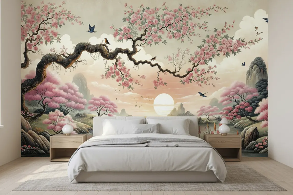 Papel Mural Arbol de Flores y Aves
